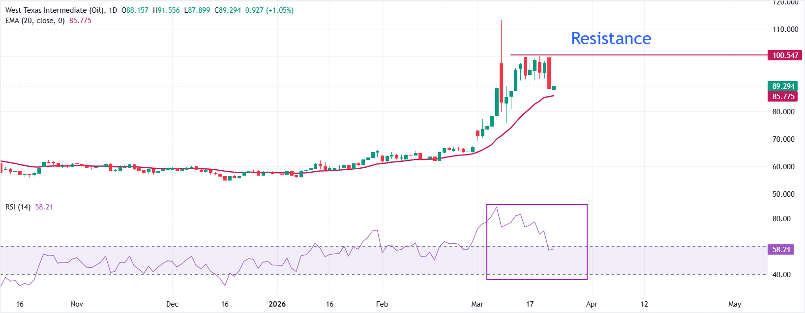 纽约商品交易所(NYMEX)西德克萨斯中质原油(WTI)期货在周二欧洲交易时段上涨2%,接近90.00美元。油价保持早盘涨势,受伊朗拒绝参与与美国就结束中东冲突进行任何直接谈判的推动。