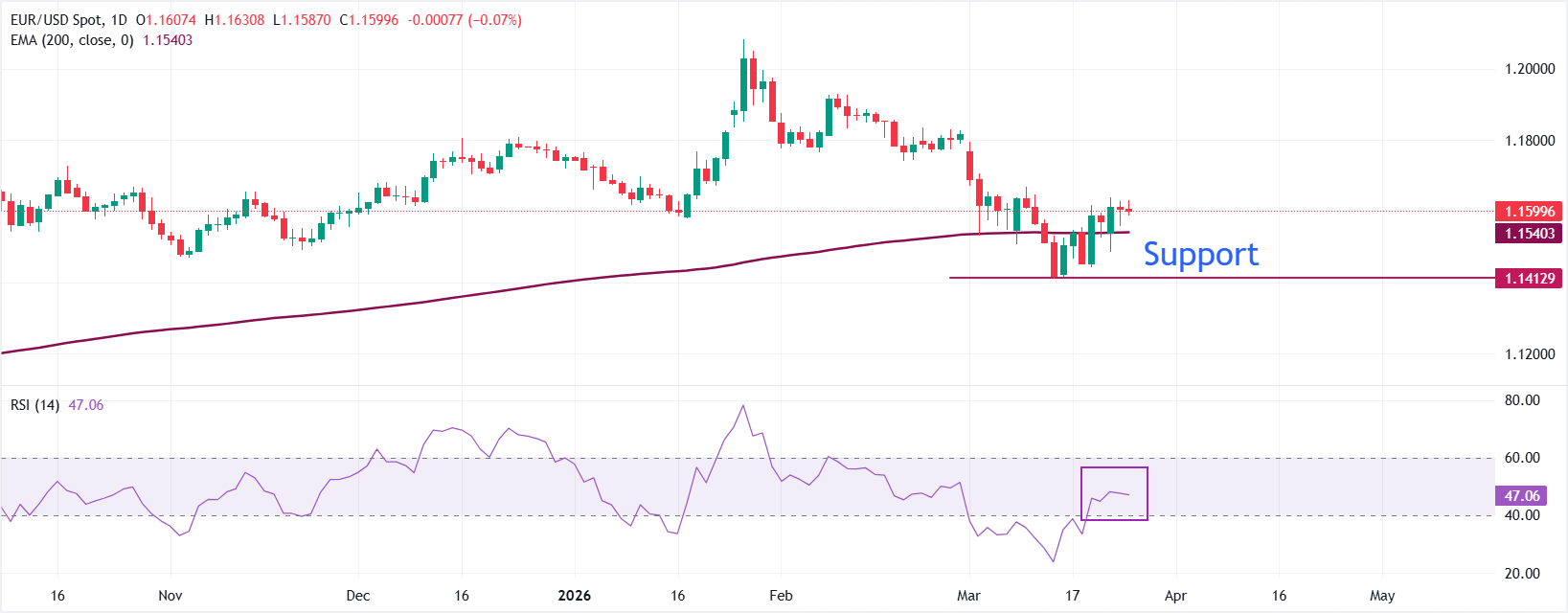 周三欧洲交易时段,欧元/美元大致围绕1.1600区间震荡。该主要货币对处于盘整阶段,投资者等待伊朗对美国总统唐纳德·特朗普提出的为期一个月的停火及15点解决方案的回应。
