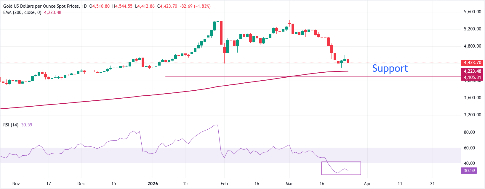 周四欧洲时段,金价(黄金/美元)下跌2%,至4410美元附近
