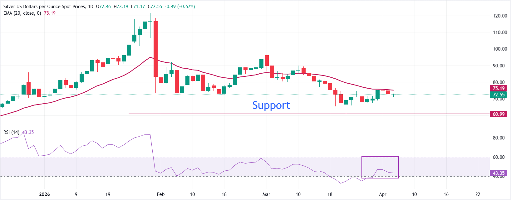 周一亚洲尾盘,银价(白银/美元)下跌0.7%,至约72.50美元,但整体在有限区间内盘整。随着投资者等待伊朗对美国总统唐纳德·特朗普的最后通牒作出回应,这种贵金属走势趋于横盘。