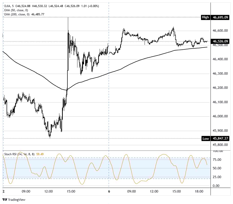 道琼斯工业平均指数(DJIA)在复活节后的首个交易日周一微涨120点,涨幅为0.3%。该指数在早盘交易中一度冲向46,700点,随后在午盘时段回落,最终收于约46,500点。标普500指数上涨0.4%,纳斯达克综合指数上涨0.5%,延续了上周分别上涨3%、3.4%和4.4%的涨势。周一的交易日是交易者首次有机会消化周五公布的3月份非农就业报告(NFP),数据显示经济新增就业岗位178K,远超预期的60K。