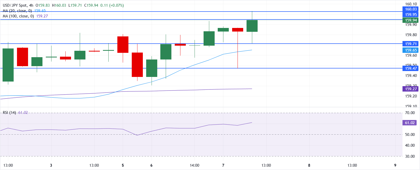 美元/日元货币对周二在159.95附近交易,走势强劲但波动剧烈,市场对以色列、美国(美伊)之间持续冲突的急剧升级作出反应。