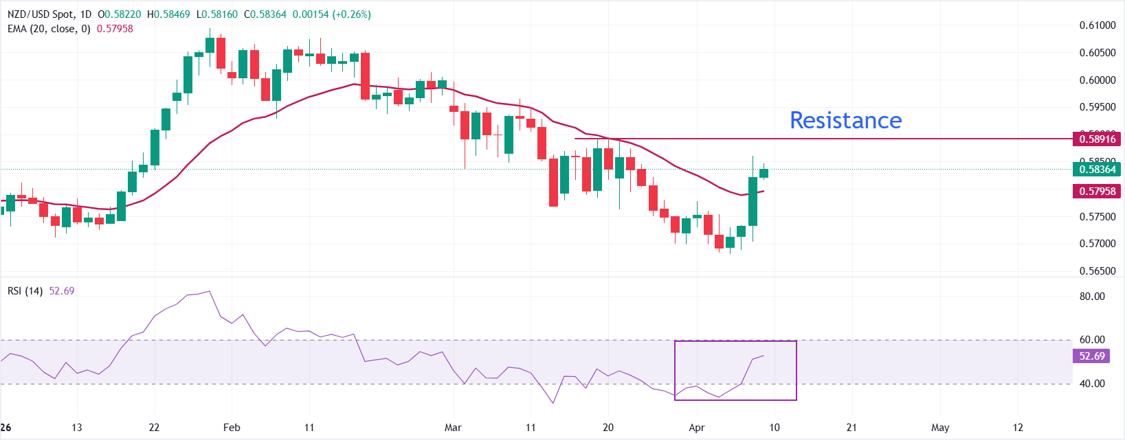 纽元/美元在周四欧洲交易时段上涨0.2%,接近0.5835。随着美国和伊朗均确认将派遣各自代表团前往巴基斯坦,进行关于10点和平提案的首轮谈判,风险敏感型货币的吸引力提升,纽元表现出强势。