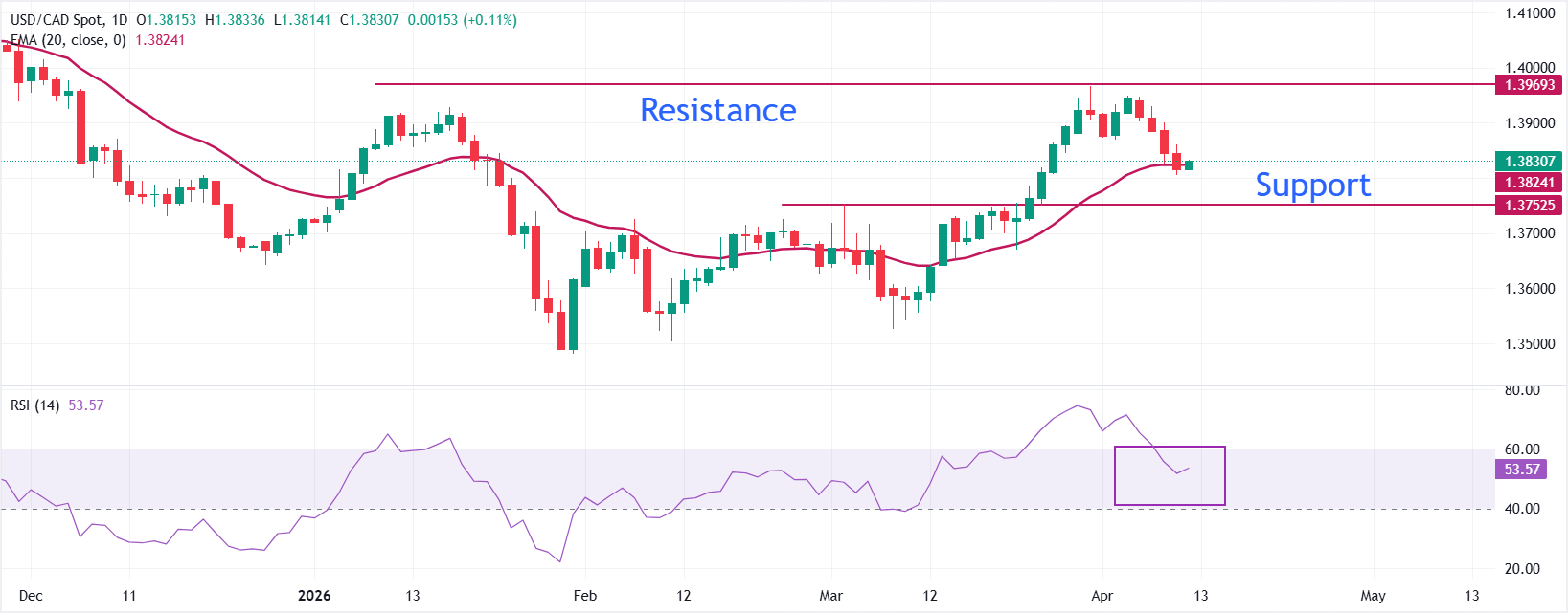 美元/加元周五从两周低点1.3805反弹至1.3833附近,结束了连续四天的跌势。随着美国(USD)在周末巴基斯坦举行的美伊10点和平提案谈判前走高,加元对美元汇率上涨。