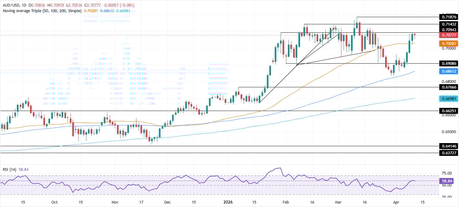 澳元(AUD)有望在周五的交易中兑美元(USD)持平,尽管市场情绪的改善推动美元指数(DXY)走低,接近四周低点98.52附近。