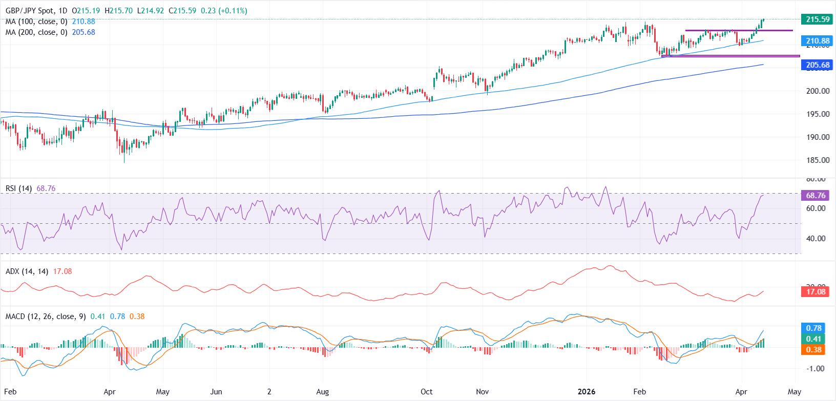 英镑/日元周二上涨,连续第七天录得涨幅,因油价高企持续压制日元(JPY),而市场情绪改善,受美国与伊朗谈判重燃希望的推动,支撑英镑(GBP)。