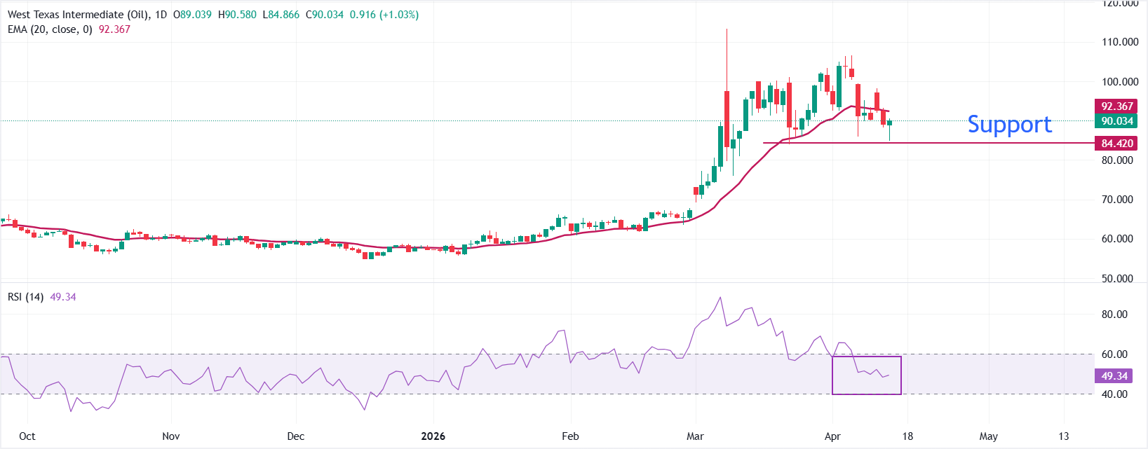 纽约商业交易所(NYMEX)西德克萨斯中质原油(WTI)期货在周三欧洲交易时段收复早盘跌幅,转为上涨,价格接近90美元。