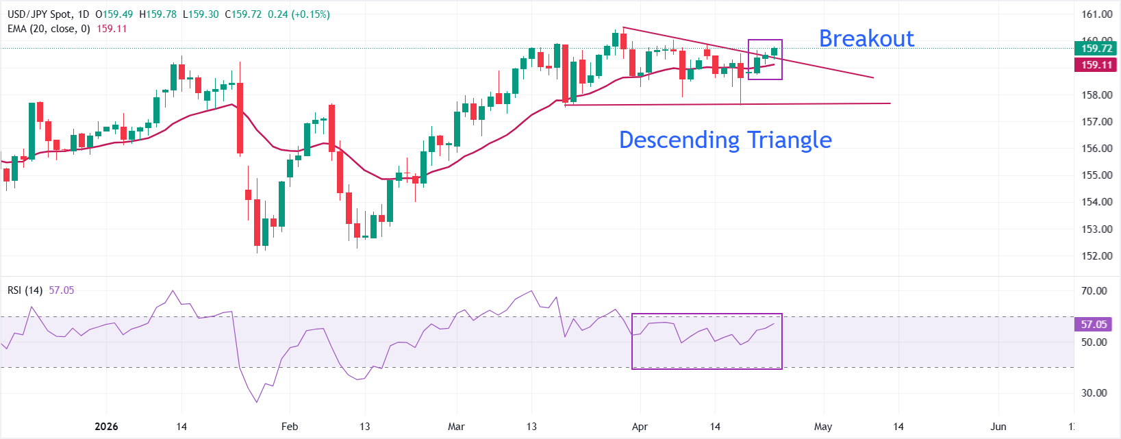 美元/日元在周四欧洲交易时段延续四日上涨,接近 159.75。由于霍尔木兹海峡长期关闭导致油价上涨,美元(USD)表现强劲,推动该货币对走强。